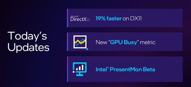 更新优化的步伐不会停歇,随着Arc独显驱动新版本的发布,Arc独显又从新驱动上获得了19%以上的DX 11性能提升,同时英特尔还提出了GPU Busy的概念来阐释了驱动优化的核心方向,并为玩家带来了PresentMon Beta这一款直观好用的GPU状况及游戏帧率监测软件。