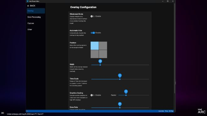 ▲Overlay游戏内叠加显示的配置界面,可以自定义界面显示效果、数据刷新频率等参数,同时英特尔表示PresentMon Beta的资源占用非常低,对游戏体验几乎没有实质性影响。