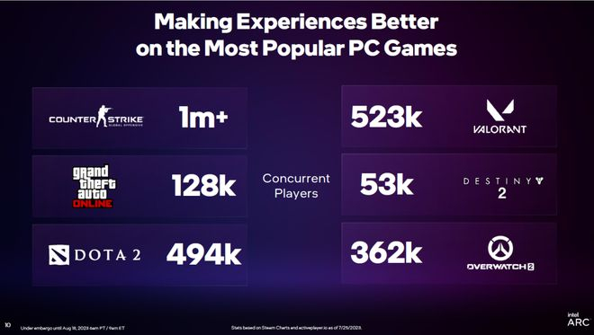 显然,从Q2开始,英特尔就已经着手于DX 11游戏性能的驱动优化工作。在英特尔看来,目前市场内受众最多的热门游戏,仍然是DX 11的天下,如《CS:GO》《DOTA 2》《PUBG》等莫不如此。因此英特尔认为为这些受欢迎的DX 11游戏提供优化解决方案是当下的重点所在。