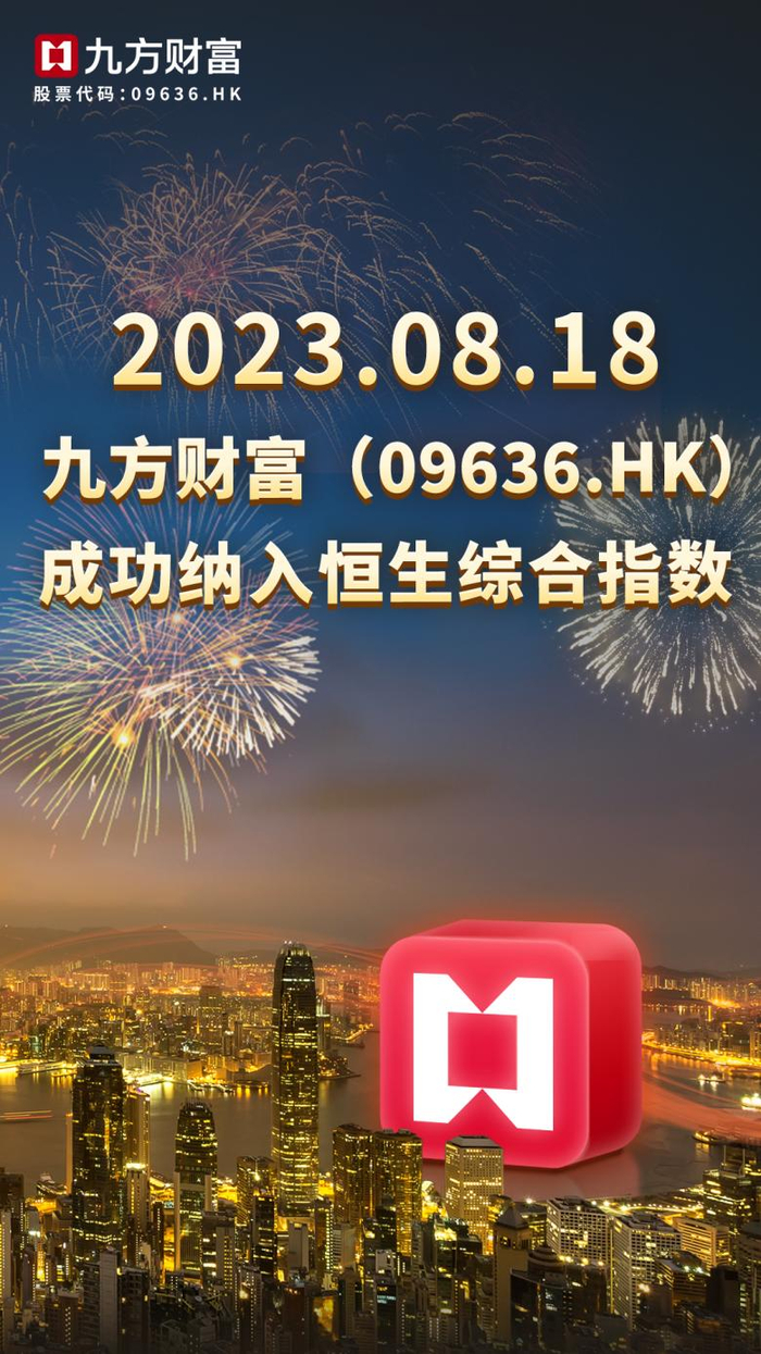 8月18日,恒生指数有限公司公布了截至2023年6月30日的恒生指数系列季检结果,九方财富(09636.HK)在市值、流动性、基本面等方面均符合恒生综合指数成分股纳入条件,即日起纳入“港股通”名单,并预计于2023年9月4日正式生效。