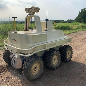 边境无人巡逻车的全地形轮式底盘具备独立悬挂、独立驱动功能,可前后、左右、斜向移动、自主转向;具有一定的爬坡、抗风、越障、涉水、负重能力,行驶速度可自行设置,且能够在道牙、泥坑、砂石、沥青、水泥等路面行驶。