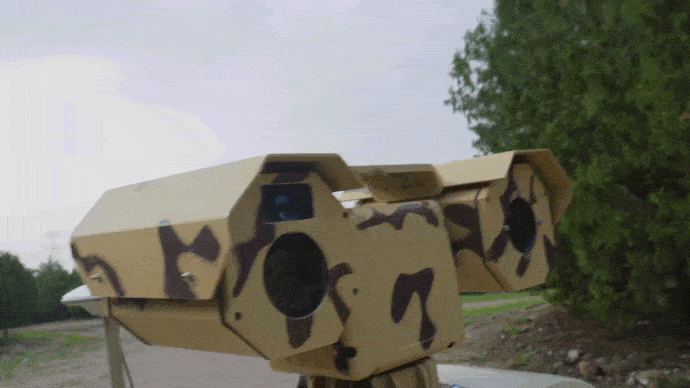 边境无人巡逻车搭载360°全景高清红外一体夜视云台摄像机,车身周围安置高清摄像头,具备人脸识别、热源检测、环境监控功能,视频画面可同步传输至监控中心。