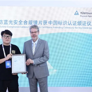 在9月11日举行的第三十四届中国(北京)国际眼镜业展览会上,国内知名镜片品牌唯尊镜片获颁德国莱茵TÜV首张防雾.防蓝光.安全合规测试认证证书。这不仅是对唯尊镜片产品品质的肯定和认可,更是国内镜片品牌自主创新,努力奋进成功的见证。