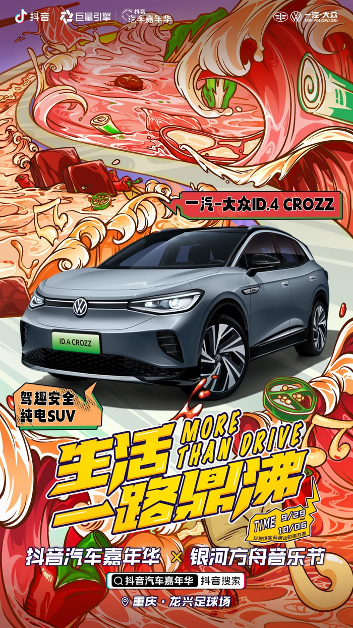 本次抖音汽车嘉年华还与25家汽车品牌一起,通过品牌车展、餐饮集市、重庆涂鸦等系列趣味活动,将汽车内容与生活融合,拉满大家把好车开进生活,让生活一路鼎沸的期待!