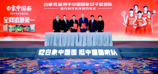 9月21日,白象食品在北京与中国国家女子篮球队完成签约,成为官方合作伙伴。此前,7月2日白象与中国女足完成签约,9月19日,白象又与中国女排完成签约。至此,最近全网热销、部分产品卖断货的白象,成为首个同时签约中国“三大球”(女足、女排、女篮)国家队的国民品牌。