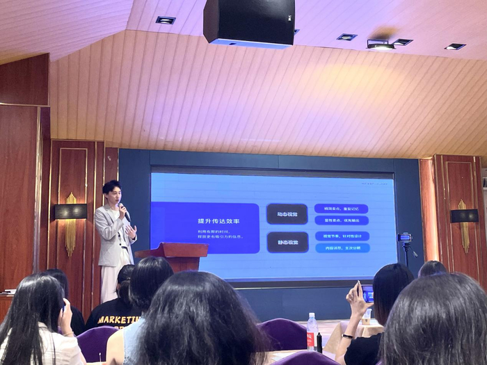 天淇,一名国内知名品牌营销增值服务品牌的创始人,他的分享主题是“基于产品的营销视觉塑造”。天淇的营销理论框架非常扎实,详细探讨了如何利用产品的视觉设计,来建立和维护品牌形象,确保在市场中始终保持品牌的领先地位。他还分享了如何利用各种营销策略来进一步加强品牌在市场中的地位。