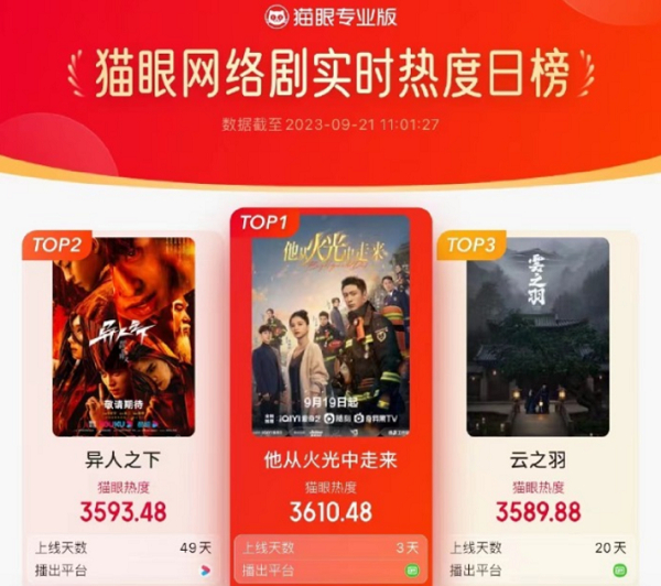 行业视角来看,《他从火光中走来》为消防题材剧树立了新标杆,既能紧扣大时代的奋进脉搏,又能与观众共鸣共情。该剧一经上线,就受到了《人民日报》等官媒点赞。全国200多个省市地方消防官方账号集结,为该剧打CALL。开播三日即登顶猫眼网络剧实时热度榜。