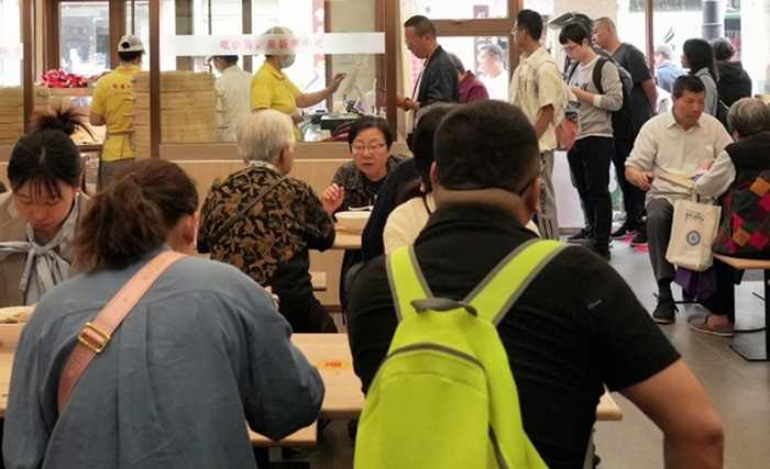 对于已经陪伴杭州六十余年的新丰小吃,在中午排满了顾客并不是一件稀奇事。上午11时,来到新丰小吃,店内外就已排起了长队。除了杭州本地的老顾客,大量游客也选择了新丰小吃品尝当地美食。