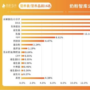 据《2022年奶粉智库微信公众平台用户搜索关键词数据报告》显示,水解蛋白/小分子的搜索量位居第一,占比达18.66%。由此可见,小分子奶粉不仅成为了乳企们布局差异化的品类之一,更成为了90/95后新生代妈妈的新宠。