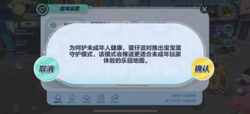 游戏中的社交环境也会对未成年有一定影响。由于各游戏的玩家年龄划分复杂,其聊天系统所传播的信息易给予未成年人不良影响。而《蛋仔派对》通过“宝宝蛋”模式单独开辟了未成年人内容专区,以定制化的内容营造适宜未成年人的游戏环境。玩家们可以在设置中开启“宝宝蛋守护模式”。