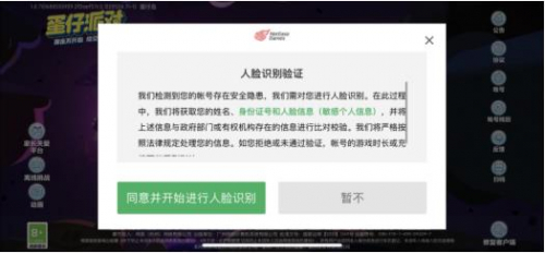 测试发现,部分游戏可通过购买“租售号”可以直接避开实名认证,且防沉迷时间与消费限制将会完全失效。这一部分的未成年藏于暗处,众多游戏厂商束手无策。而《蛋仔派对》会主动以人脸识别的方式介入游戏流程。玩家的身份信息、人脸数据、账号实名三项必须一致才可通过人脸验证,无法验证则会被纳入防沉迷系统。精准的“二次认证”让“黑号”无处可逃,可以更加全方位的保护未成年人。