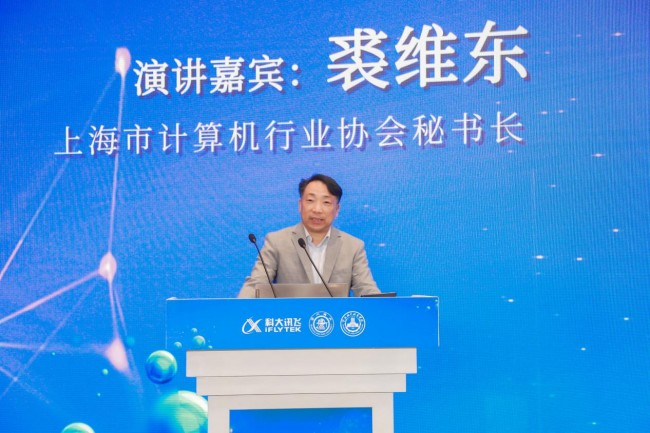 上海市计算机行业协会秘书长裘维东作题为“集成AI技术,探索计算机行业的新发展可能”的主旨报告。