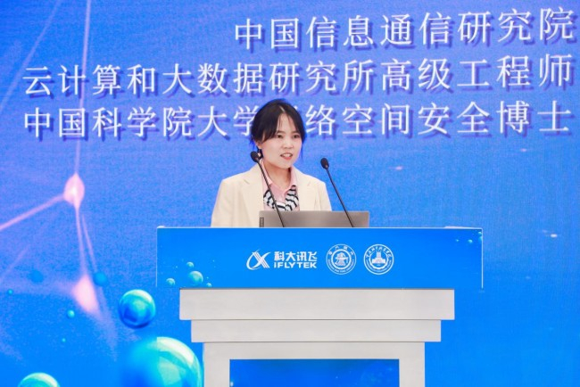 中国信息通信研究院云计算和大数据研究所高级工程师、中国科学院大学网络空间安全博士白入文作题为“生成式AI技术应用发展态势及评测化探索”的主旨报告。