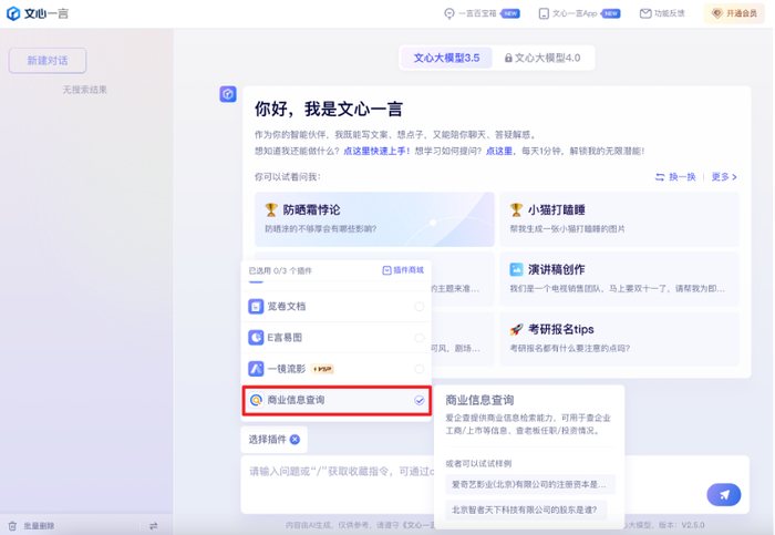拥抱AI大模型,百度爱企查于文心一言上线“商业信息查询”插件