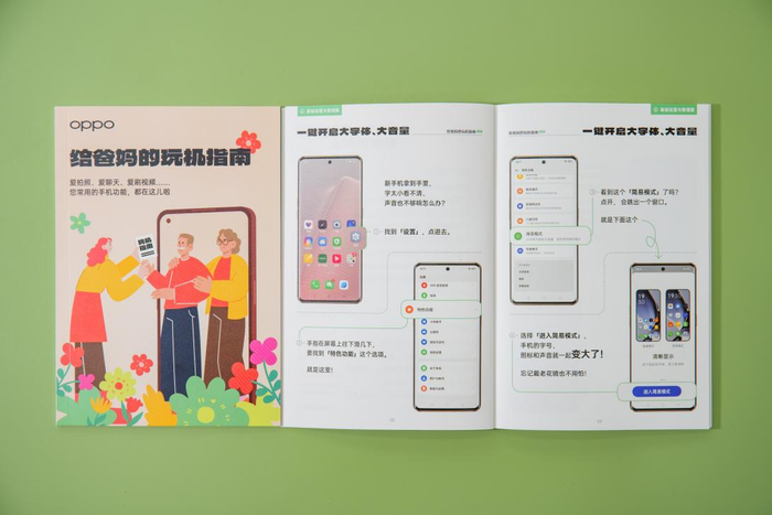 OPPO服务一直密切关注老年用户的用机需求,OPPO手机本身就自带了很多适老化功能和老年关怀模式。但对于很多老年人来说,要掌握如此多的功能仍颇有难度。为了让年长用户更加方便地学习常用功能及满足个人兴趣爱好的软件,帮助他们更好地进行亲子沟通及社交娱乐,OPPO服务于近期推出了专为年长用户设计的《给爸妈的玩机指南》,手册涵盖基础设置、社交和娱乐等各个操作层面,还有贴心的防诈骗技巧,好玩实用,即使子女不在身边,爸妈也能轻松自学,还可放在手边随时查阅。目前该手册已在全国多家OPPO官方服务中心投放,供用户免费取阅。