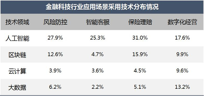 在关键技术的应用上,人工智能技术备受瞩目,其在保险理赔领域的表现最为突出,其专利占比高达31.0%。风险防控、智能客服和数字化经营领域的人工智能专利占比则逐渐降低。