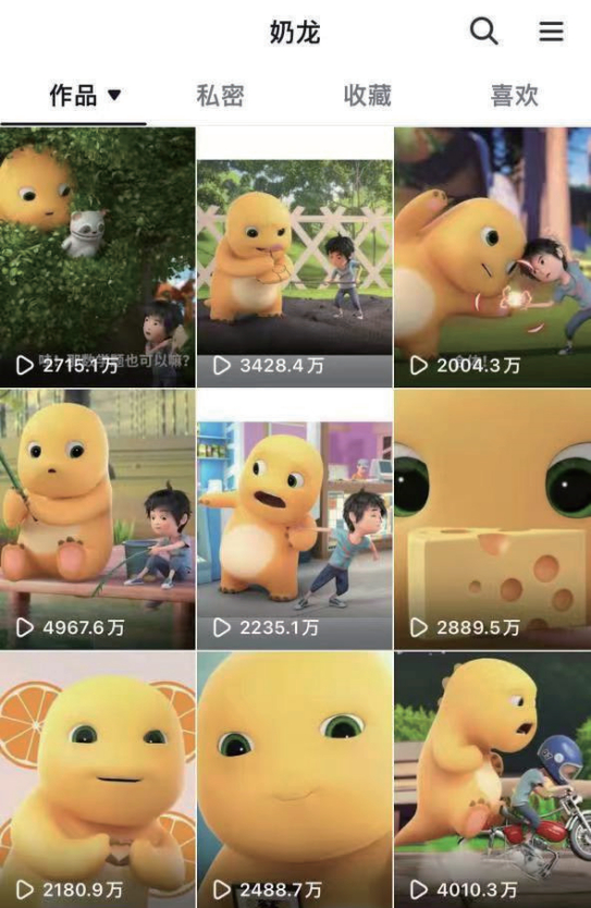 在保持动画高品质的基础上,奶龙IP不断进行创新和突破。持续“破圈”。上线3年间先后通过各种形式与王小卤、英雄联盟、施巴、红之、沪上阿姨、半天妖、美团、等近百知名品牌进行合作、联动、授权等,不断拓宽自己的形象和影响力。根据抖音平台数据显示,在奶龙与各品牌合作的动画视频中,播放破千万,点赞十万+的爆款频频出现,成功的跨界不仅持续向外输出更长期的文化价值和商业价值,更为国漫产业的持续健康发展提供了宝贵经验。