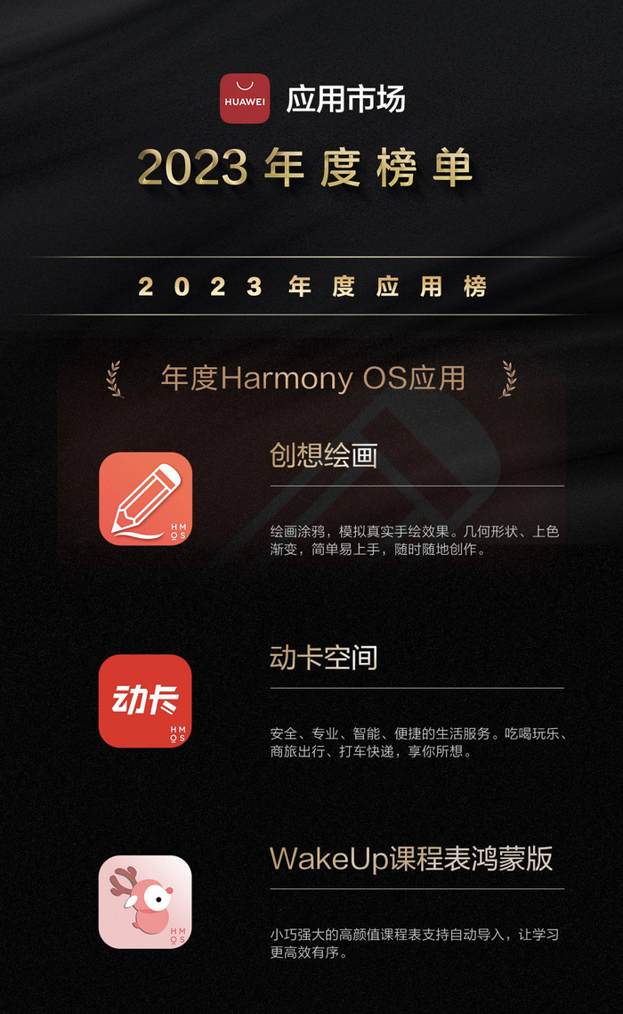 2023华为应用市场年度榜单,对比以往,整体获奖数量有所精简,共包括年度应用榜、年度游戏榜及年度智慧生活榜三类榜单,在年度应用榜中,年度Harmony OS应用强调了科技与艺术的结合,如创想绘画、动卡空间和WakeUp课程表鸿蒙版,它们在绘画、生活服务和学习效率等方面提供了出色的解决方案。轻木鱼、天眼查、日出日落时间等元服务,则展示了科技在生活解压、信息查询等方面的巨大潜力。而今年新增的年度应用奖项,更加注重应用的社会价值与创新性,共有三款年度应用:酷狗音乐、印象笔记和华夏风物,从科技对社会的正向影响、跨领域的突破和创新、文化传承与生活方式变迁等评选维度中脱颖而出。这些应用创新也为更多用户感受AI趋势贡献了力量。