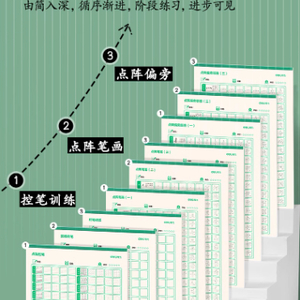 得力点阵字帖的特点之一是适用初学者,易上手。它采用全套9本科学搭配进阶字帖的练习方式,包括控笔训练、点阵笔画和点阵偏旁。从简单到复杂,循序渐进,每个阶段都有具体的练习内容,让孩子的进步一目了然。