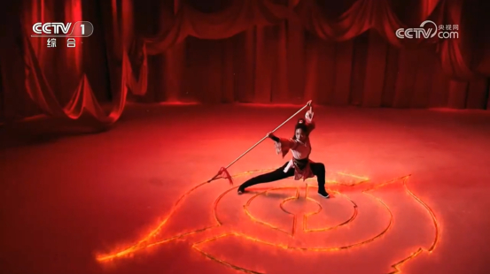 在央视跨年晚会舞台上,武术节目《气蕴风火》采用虚实结合的方式,复现了《王者荣耀》中英雄赵怀真与云缨二人相约切磋武艺的场景。凌云饰云缨,使用的峨眉枪法讲究动作灵活,不拘立势与步伐,攻守兼施,以克敌护身为旨。杨顺洪饰赵怀真,使用的太极拳讲究以静制动、以柔克刚、借力打力。