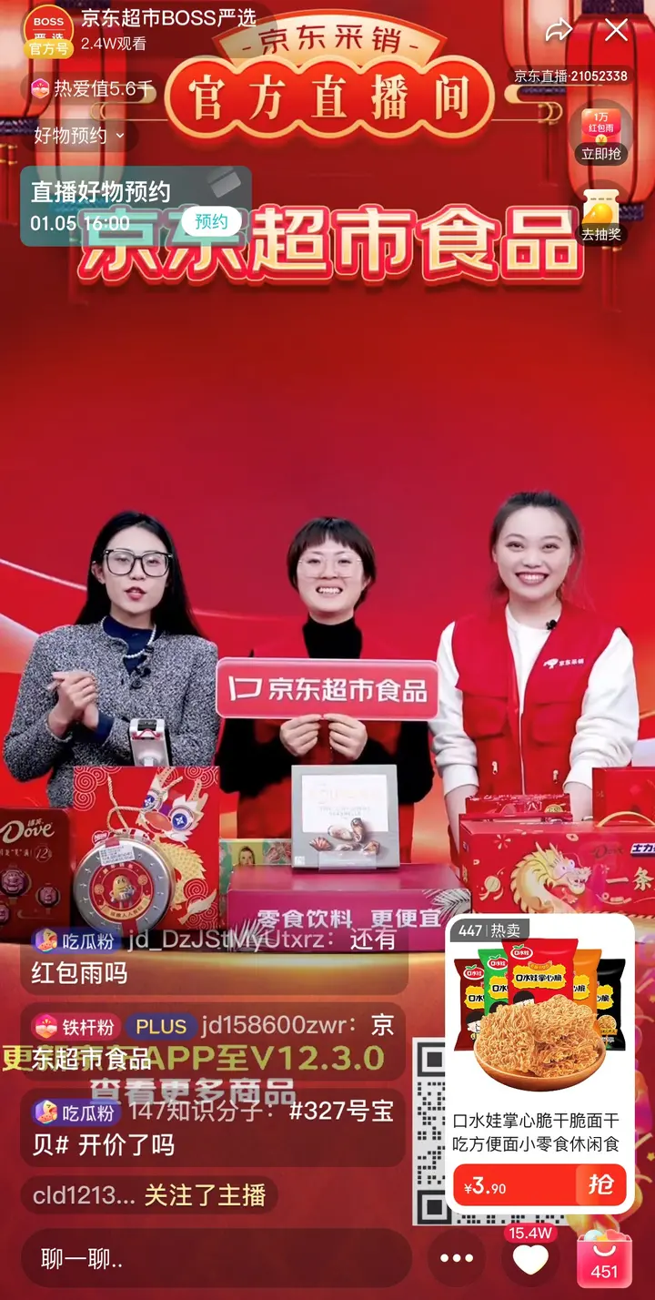 细心的消费者发现,进入新一年,京东超市BOSS严选直播间将“京东超市食品”几个大字,前置到直播间的封面上。