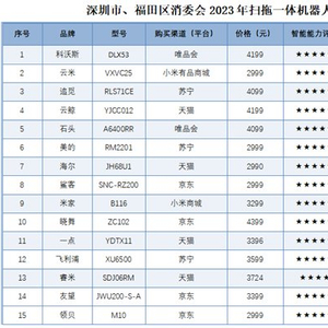 据深圳市消委会介绍,本次比较试验测试历时6个月,覆盖市面上15款扫地机器人热销机型,涉及科沃斯、石头、云鲸、米家、追觅、美的等市场主流品牌,价格从2990—4399元不等。结果显示,15个品牌样品中有7款综合表现优秀,其中云鲸扫拖机器人顺利通过此次所有项目的检测考验,产品能力符合行业标准要求。