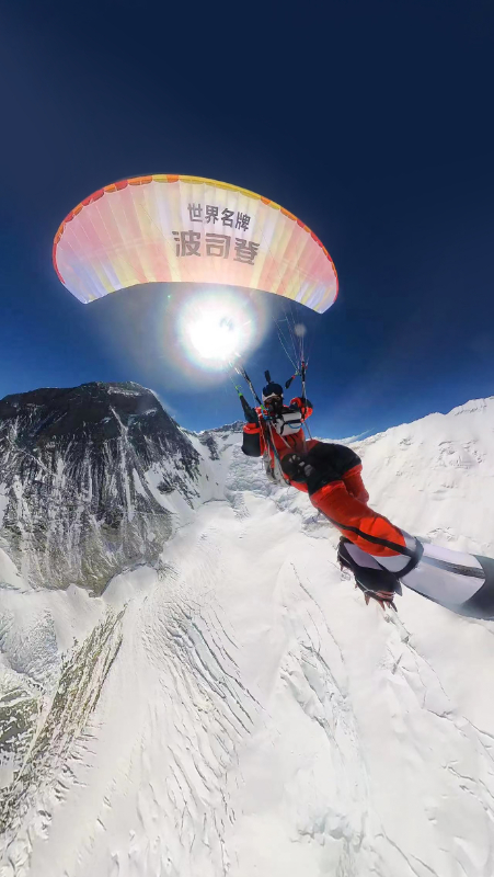 5月18日,波司登珠峰登山队成功登顶珠峰,中国滑翔伞飞行员木子(李生涛)以滑翔伞的方式飞越了珠峰。