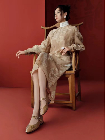 穿搭建议:百思图BASTO春季新款法式玛丽珍鞋+新中式套装