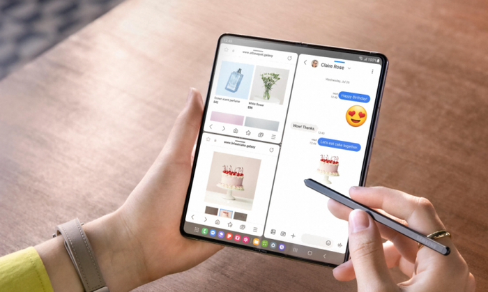 除了沉浸式的大屏体验,三星Galaxy Z Fold5拥有高效的多任务处理能力,能够极大地提高学生们的学习效率。例如,当用户需要在网上查找资料进行学术研究时,可以一边在浏览器中搜索信息,一边在三星笔记中中记录要点,甚至还可以通过优化后的弹窗视图与同学通过即时通讯软件讨论问题。对于那些喜欢在空闲时间享受娱乐的学生,三星Galaxy Z Fold5同样能够满足他们的需求。借助立式交互模式,用户能够自由且沉浸的进行追剧,或者切换到社交媒体,浏览朋友的最新动态,分享自己生活的点滴。