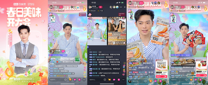 明星达人效应,是能同时实现大范围传播与高效转化的途径。看准这一点的抖音电商,邀请明星辰亦儒担任春日美味趋势官,借明星的号召力,并通过与品牌连线以及直播的即时种草功能,高效带动合作品牌进行交易转化。