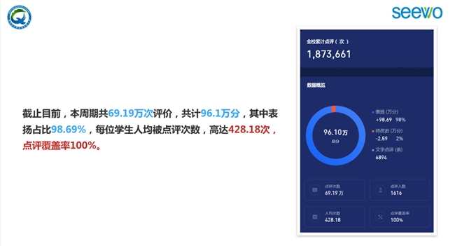 学生评价反馈更及时、更有效。评价在实时发生,评价反馈也及时到达家长、学生和教师手中,对反馈信息的及时采集和分析可以帮助教师或家长及时发现问题,调整教育策略。同时,也可以指导家长关注和改进家庭教育行为,实现家校共育。而通过学生自我、生生之间、小组之间、教师和家长的及时评价,学生的自我反思能力、合作能力等得到了提升,借助信息化手段,实现了教师、家长和孩子等评价主体的多元互动,形成了积极评价与自主管理的双赢。