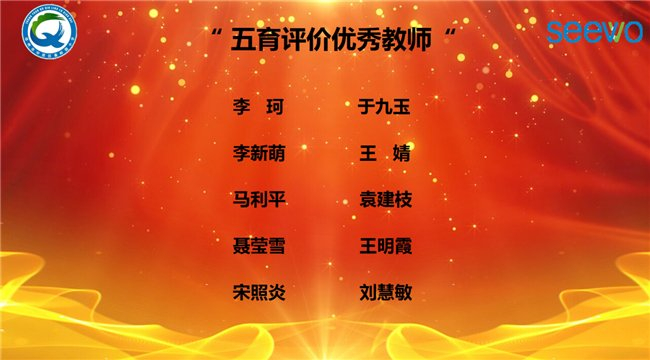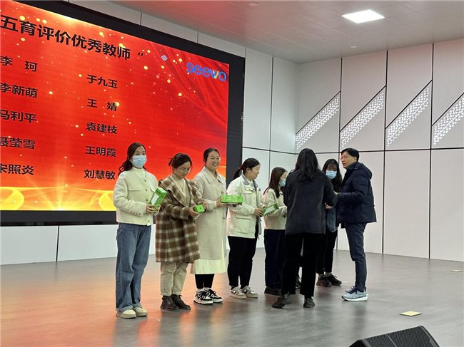 3月18号,希沃一行人在学校报告厅,给全体教师汇报了学校借助希沃综合评价平台,坚持德智体美劳“五育并举”,对学生进行全方位评价,全面发展学生素质教育取得的一定成效。并由学校赵校长为获得“五育评价优秀教师”称号的老师们进行颁奖。