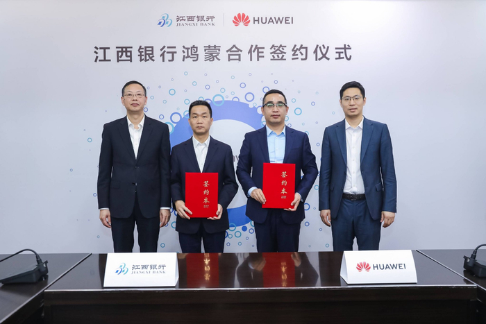 4月2日,江西银行与华为举行鸿蒙合作签约仪式,正式宣布旗下移动客户端“江西银行”、“江西银行企业网银”和“惠享精彩”将启动鸿蒙原生应用开发,为江西省的鸿蒙生态发展注入金融力量。未来,双方将充分发挥各自优势,共同加强科技金融创新与探索,为用户带来更加安全、智能、便捷、有温度的移动金融服务及体验。