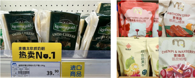 记者走访麦德龙门店还发现,小包装商品类别还不少——16颗一盒的麻薯、2支一升的鲜牛奶、100至200克的干酪、600克水果麦片、800克至1千克的烤翅、200克的三文鱼片、一袋三包独立包装的手撕鱿鱼条......这些商品的共同特点是:相比其他同类产品,麦德龙的包装更小,像山楂条、杨梅等零食也都是一袋里分独立包装,消费者能够方便分享,不仅避免了浪费,也迎合了年轻群体喜欢尝新和热爱分享的喜好。