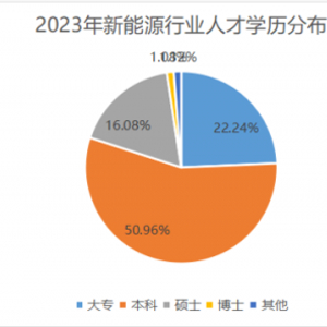 新能源行业人才结构持续优化,高学历人才占比显著。其中,本科学历人才占据主体地位,占比达到50%,而硕博高学历人才也超过17%,为行业提供了强大的智力支持。这一丰富的人才储备,不仅有助于推动新能源行业的技术创新和产业升级,更为我国在国际新能源市场中赢得更大发展空间奠定了坚实基础。