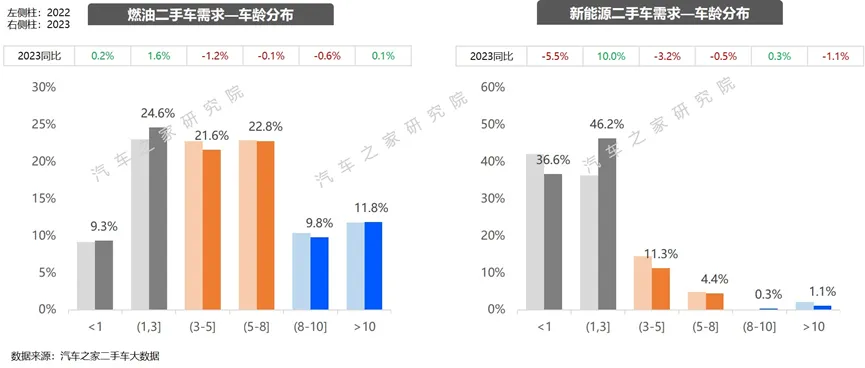无论燃油还是新能源,车况好的3年内短车龄车源受用户偏爱,需求上升。