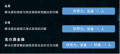 (3)VR、AR技术往往通过作用力从设备到人的方式,实现了虚拟画面的呈现与交互。无介质全息技术则通过作用力从设备到环境再到人的方式,实现了无需穿戴设备的虚实结合问题。