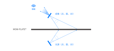 无介质全息空中成像技术,顾名思义,是一种不需要物理介质就能呈现三维图像的技术。它的核心在于像航科技自研的纳米级光学成像材料MOW-plate®(微通道矩阵光波导平板),通过光学微镜结构来重构光场,实现了在空气中可交互的真实影像,结合交互算法及用户体验场景设计,最终形成无介质全息空中成像技术。