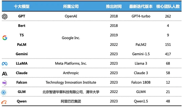 十个大模型核心成员数量