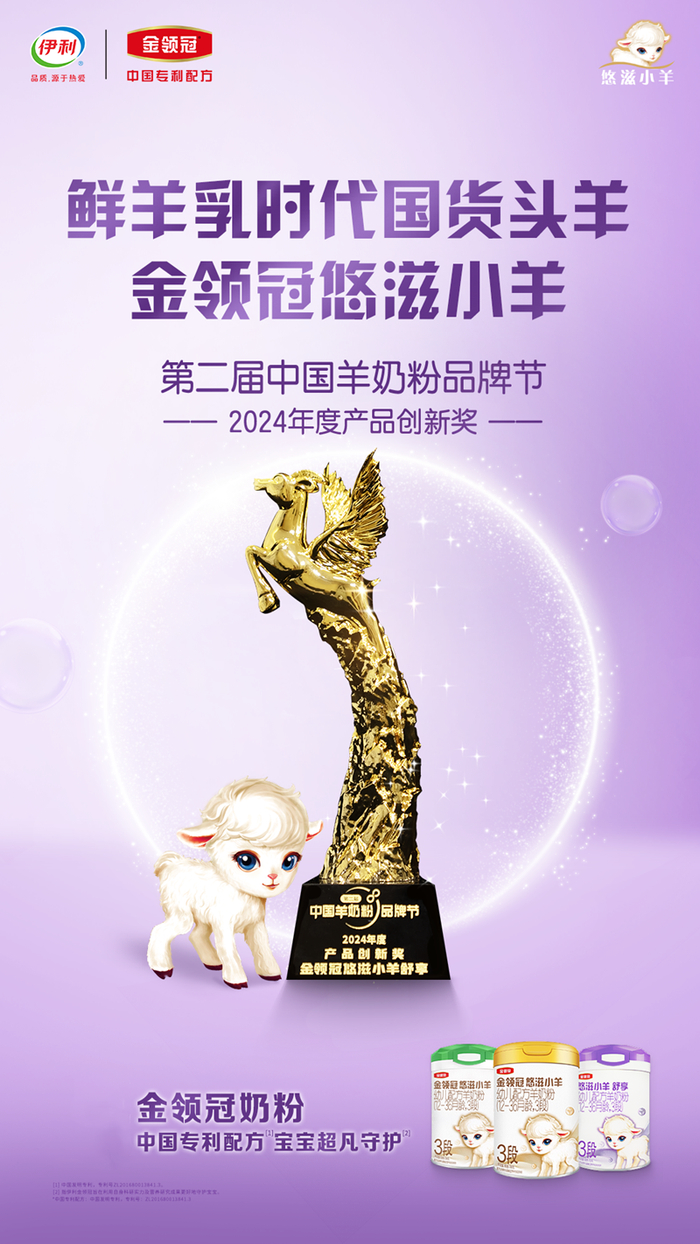 近日,伊利金领冠新品悠滋小羊舒享新品获批,凭借其100%鲜羊乳[1]、致敏蛋白低85%[2]以及超强保护配方等优势,一举斩获第二届中国奶粉品牌节暨羊奶粉品牌节“2024年度产品创新奖”,以“超越之作”树国货羊奶“鲜”标杆。