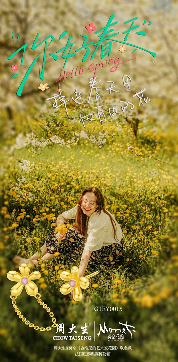 莫奈花开,好运自来。莫奈花园各式各样的花朵悄然绽放,将莫奈的浪漫精神外化,并毫无保留地展现在世人眼前。莫奈花园的浪漫而独特的春景,通过周大生珠宝的创意设计生动再现。在周大生莫奈花园系列春日新品自由而浪漫的外形下,传递了对自然和生命的热爱,不负春日好时光。