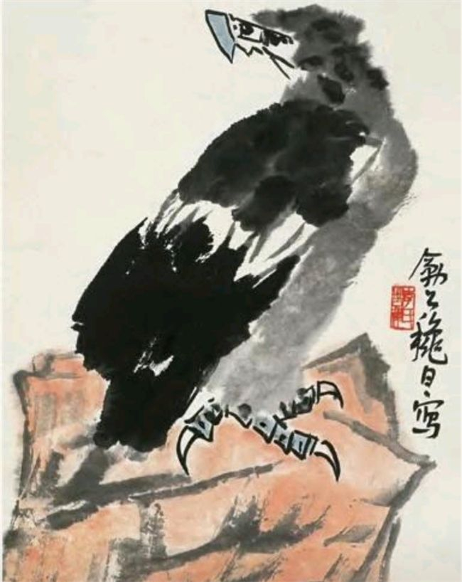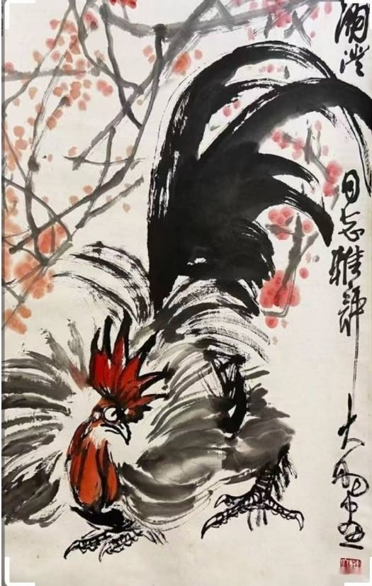 陈大羽,著名大写意花鸟画大师,书法家、篆刻家。以大写意花鸟而著称,尤擅画雄鸡,兼及山水、人物,作品气势宏伟,笔力雄健,浑厚酣畅。他对大写意花鸟最大的贡献,是一改传统写意文人画温文儒雅的气质,而代之以豪放的个性风格和雄强的时代特征。他在吴、齐画风基础上,强化了笔墨的表现力,尤其善于运用浓墨浓彩,形成墨彩相撞相融的强烈效果,开合充满视觉张力。进入晚年,他的笔墨语言愈趋雄浑老辣,达到极为自由和纯粹的境界。他深知大写意花鸟需要诗、书、画、印全面修养的支撑,其书法长期攻研碑体铭文,并参合了怀素、王铎以及吴、齐等名家书风,在篆体和行草上既见传统,又见性格,书风豪迈沉雄,气势纵横驰骋,结体巧拙相济,笔线遒劲有力,书画金石相得益彰,合为整体精神。