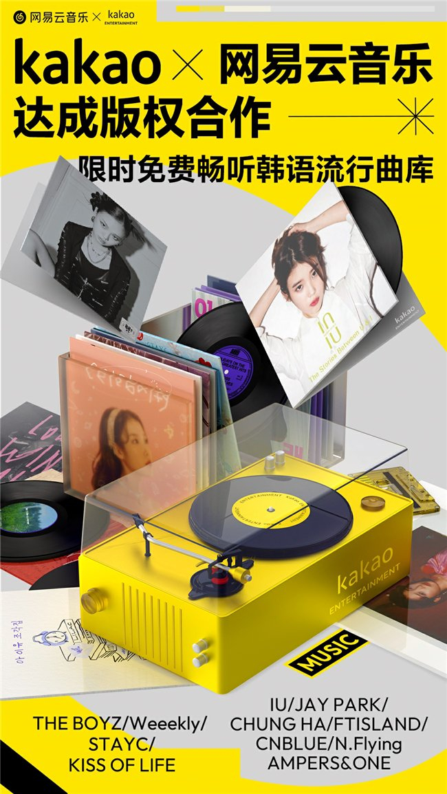 网易云音乐牵手韩国知名娱乐公司Kakao,IU、朴宰范等知名艺人作品回归云村