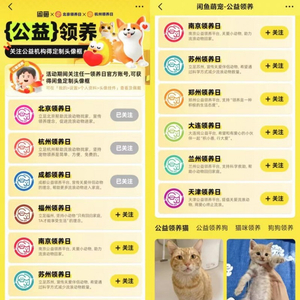闲鱼工作人员介绍,这是闲鱼首次联合宠物公益组织举办线下活动,“0元领养”项目将是一个长期投入的板块,本次活动将在线上线下同时开启,除了5月18日在北京、杭州的两地的线下活动,成都、福州、南京等城市的“0元领养”渠道也在闲鱼线上同步开展。在闲鱼搜索“公益领养”,或进入闲鱼同城页面,可以了解更多0元领养活动信息。同时,用户在闲鱼关注公益机构账号后,可以获得定制头像框。