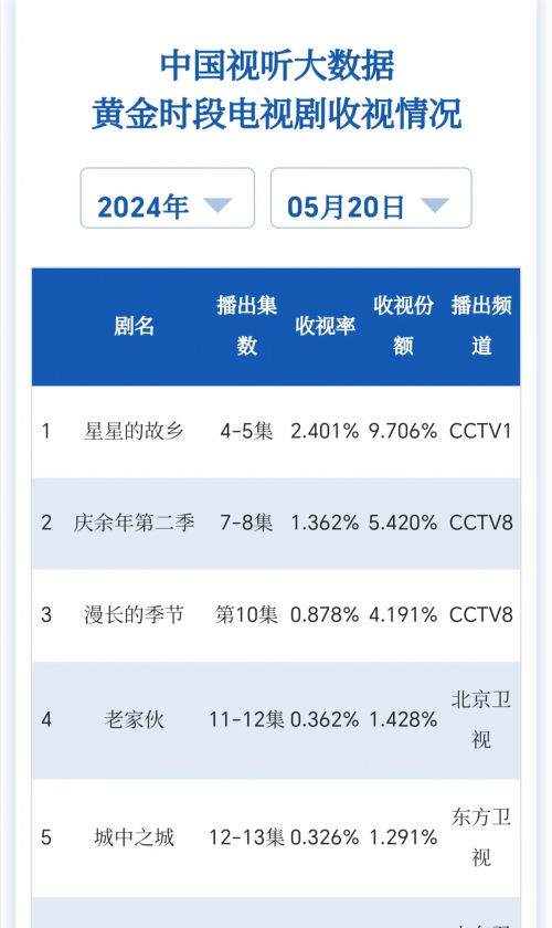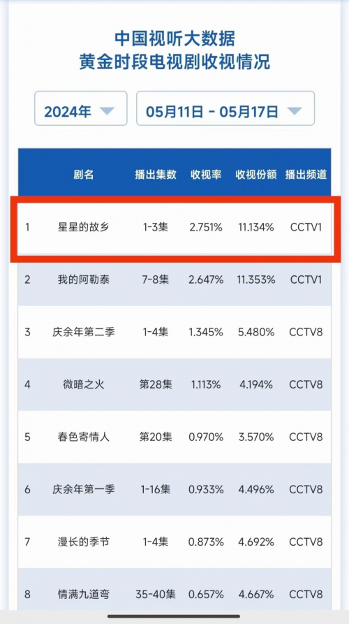 《星星的故乡》总局收视率荣膺榜首