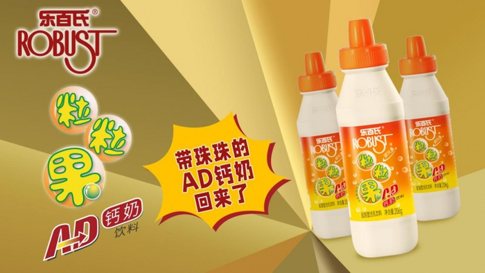 1995年,乐百氏首推含钙乳酸奶,1996年~2000年,乐百氏陆续推出AD钙奶、双歧因子AD钙奶、粒粒果AD钙奶等一系列乳酸奶产品,并邀请多位明星担任代言人,登陆央视、湖南卫视等电视台,成为当时家喻户晓的国民品牌。