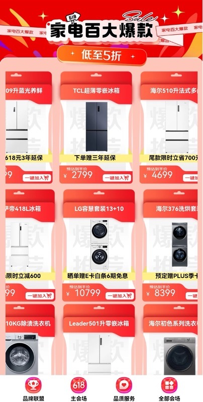 6月6日晚8京东家电家居“史低价”套装开抢 海尔全家桶低至618元