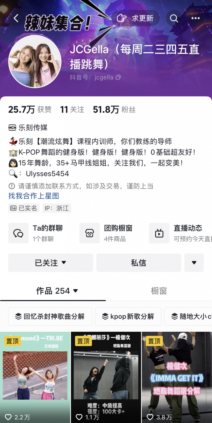 JC名叫张晓燕,曾经在杭州一家连锁餐饮店做店长,Gella谌娟则曾是广东一家韩国企业的采购。二人均于2015年乐刻刚成立就加入了这家公司。与传统健身房年卡模式不同,乐刻主打月付制、24小时以及全程无推销的自助健身房模式,已在全国23个城市开设1400家门店。出于对舞蹈的热爱,二人进步神速,在2021年成为乐刻的“内训师”,也就是教练的老师,具备了主研发健身舞蹈课程的能力。