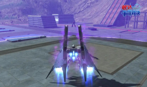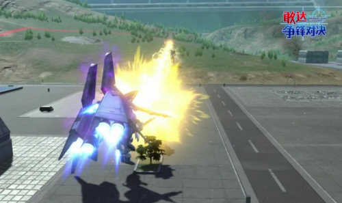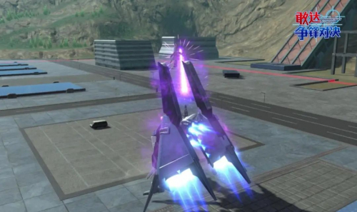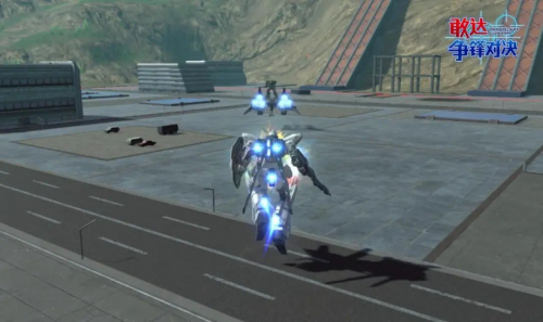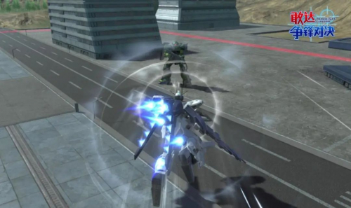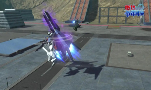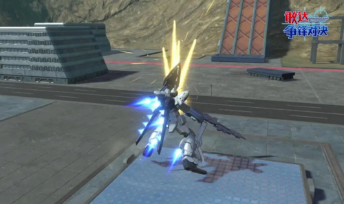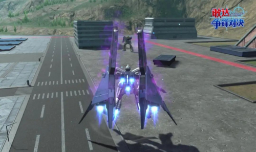 向后空翻切换为普通形态的同时,指挥梅萨拉格拉斯汀机动装甲对目标进行长照射,命中时击飞目标。