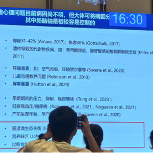 会议中,绵阳市第三人民医院精神大科主任、互联网医院副院长黄明金带来了《从肠脑轴理论探讨肠道菌群在精神、心理疾病中的应用》的精彩演讲。黄主任在演讲中讲述,肠道不仅仅是一个消化器官,它还通过神经、免疫和内分泌途径与大脑紧密相连,共同调节着人体的情绪、行为和健康状态,这种作用机制称为”肠脑轴“,而当肠脑轴失调时,可能会导致一系列心理和生理问题,包括但不限于焦虑症、抑郁症、自闭症、多动症以及肠易激综合症等。